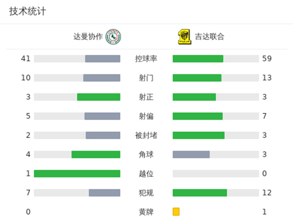 全场比赛结束,吉达联合1-1达曼协作。