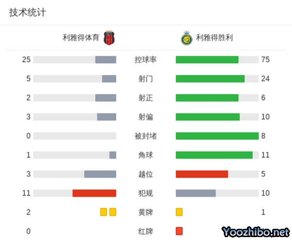 关键事件: 第15分钟,布罗佐维奇角球开出!弧顶左侧空位奥塔维奥停球后右脚抽射!皮球击中格雷有一个变线,窜入网窝!利雅得胜利1-0领先利雅得体育↓