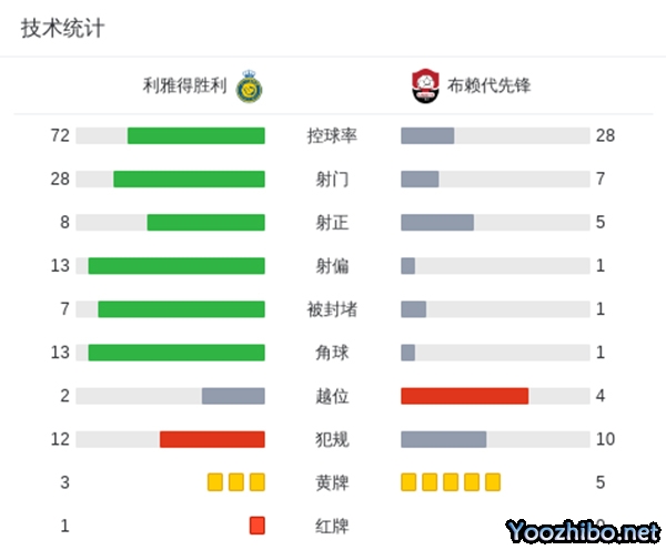 最终利雅得胜利1-1布赖代先锋无缘开门红。