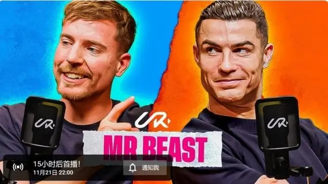 此前C罗在个人频道发布下期嘉宾预告,并表示“我们将轰动网络”。野兽先生在YouTube拥有3.31亿粉丝,该平台粉丝数量最多。