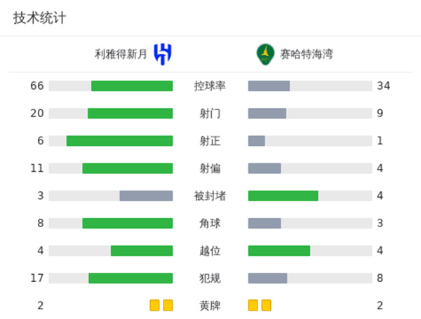 最终利雅得新月主场1-0小胜卡利杰。