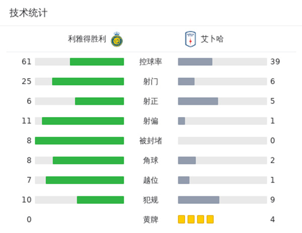 全场比赛结束,利雅得胜利2-2艾卜哈。