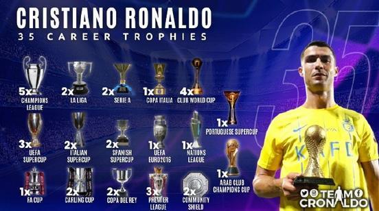 随着C罗阿拉冠奖杯被摘除,他职业生涯的冠军数重新变回了34个。而绝代双骄中的另外一位梅西,由于此前已经夺得了北美联盟杯的冠军,他职业生涯冠军数已经增至44个。这也意味着C罗个人冠军数,已经被梅西甩开10个。