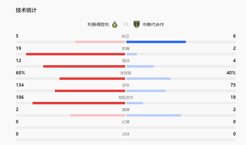 全场比赛结束,利雅得胜利0-2布赖代合作,联赛两连败!