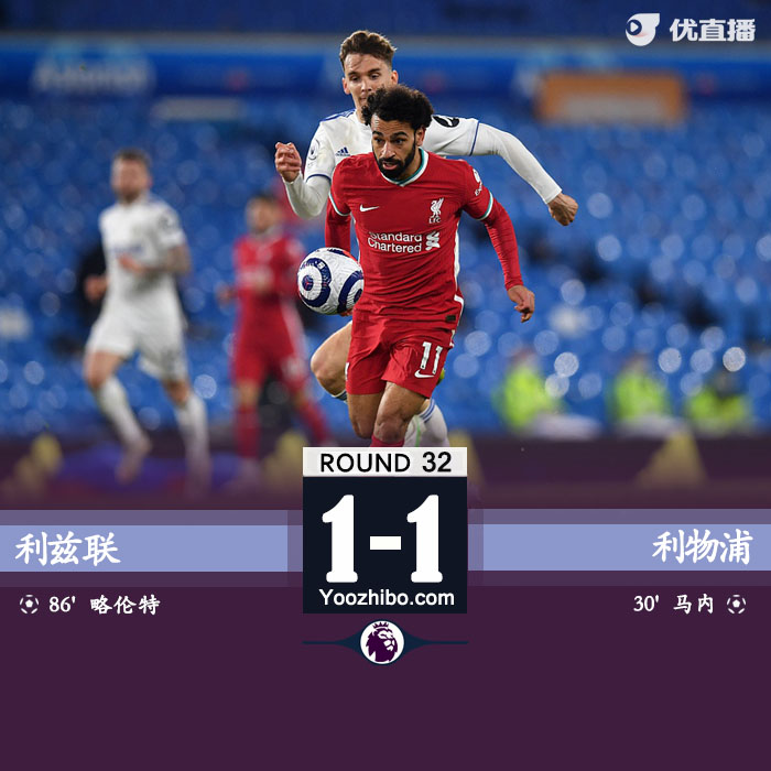 JRS直播网4月20日讯 北京时间04月20日星期二03:00,英超第32轮利兹联对阵利物浦。上半场,阿诺德助攻马内破门,利物浦半场1-0领先利兹联。下半场,利兹联狂攻,班福德挑射击中横梁,略伦特终场前扳平比分。最终,利物浦客场遭绝平1-1利兹联。利物浦联赛3连胜终结,目前仍位居联赛第六,距离第四有2分差距。