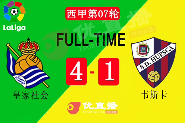 JRS直播网讯:北京时间10月25日晚至26日凌晨,2020-2021赛季欧洲五大联赛最新一轮比赛继续展开争夺。其中,皇家社会主场迎战韦斯卡,奥亚萨瓦尔双响伊萨克破门,皇家社会4-1韦斯卡。
