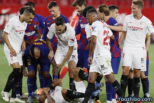 最终全场比赛结束,巴塞罗那客场0-0战平塞维利亚。