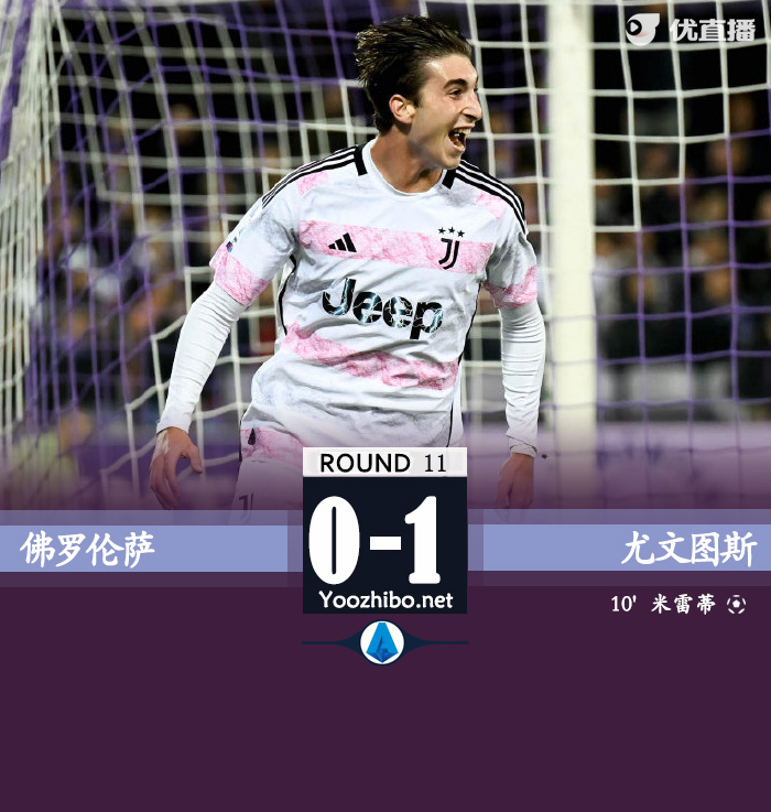JRS直播网讯 意甲第11轮,佛罗伦萨迎战尤文。上半场,科斯蒂奇助攻米雷蒂打进处子球。易边再战,双方互有攻防但均破门乏术,弗拉霍维奇失良机。最终尤文1-0佛罗伦萨。积分榜方面,尤文联赛四连胜积26分仍居第二,佛罗伦萨积17分仍第8。