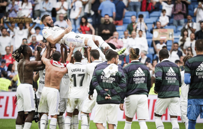 JRS直播网讯06月05日西甲联赛第38轮,本泽马完美告别皇马,在本轮比赛打进1球,帮助皇马1-1踢平毕尔巴鄂竞技,完成本赛季的收官,以78分获得西甲第二名,第一名的巴萨88分,第三名的马竞77分。本轮比赛,皇马主帅安切洛蒂亮出强阵,小熊、本泽马、罗德里戈、塞瓦略斯、克罗斯、卡马文加、吕迪格、纳乔、米利唐、卡瓦哈尔、库尔图瓦11人首发,呈433阵型,莫德里奇、阿森西奥、楚阿梅尼、巴斯克斯替补登场。