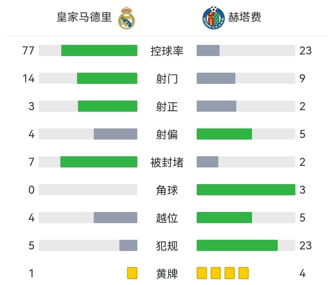 最终全场比赛结束,皇马主场1-0赫塔费。