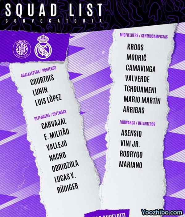 前锋:阿森西奥,维尼修斯,罗德里戈,马里亚诺
