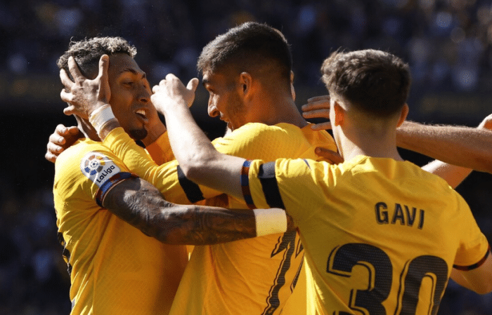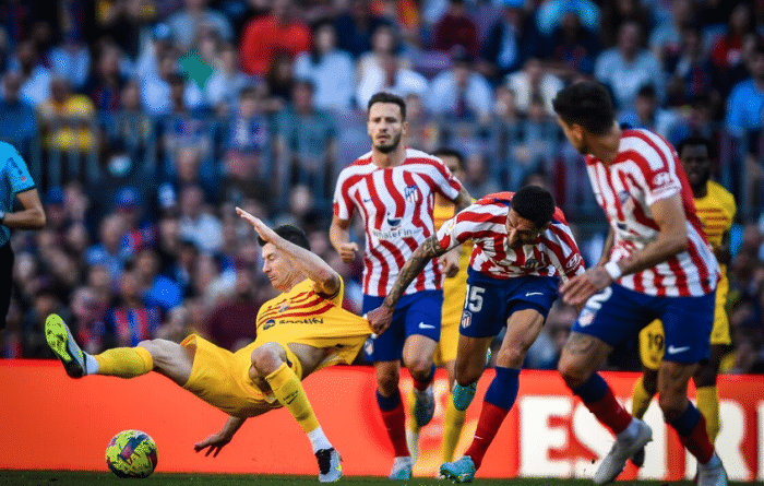 本轮对阵马竞,巴萨赢得并不轻松,主帅哈维启用433的阵容体系,拉菲尼亚、莱万、费兰-托雷斯组成三前锋,加维、布斯克茨、弗朗基-德容搭档三中场,阿莱士-巴尔德、马科斯-阿隆索、阿劳霍、孔德搭档四后卫,门将特尔施特根。马竞的首发阵容由格列兹曼、勒马尔、德保罗、卡拉斯科、奥布拉克等人领衔。
