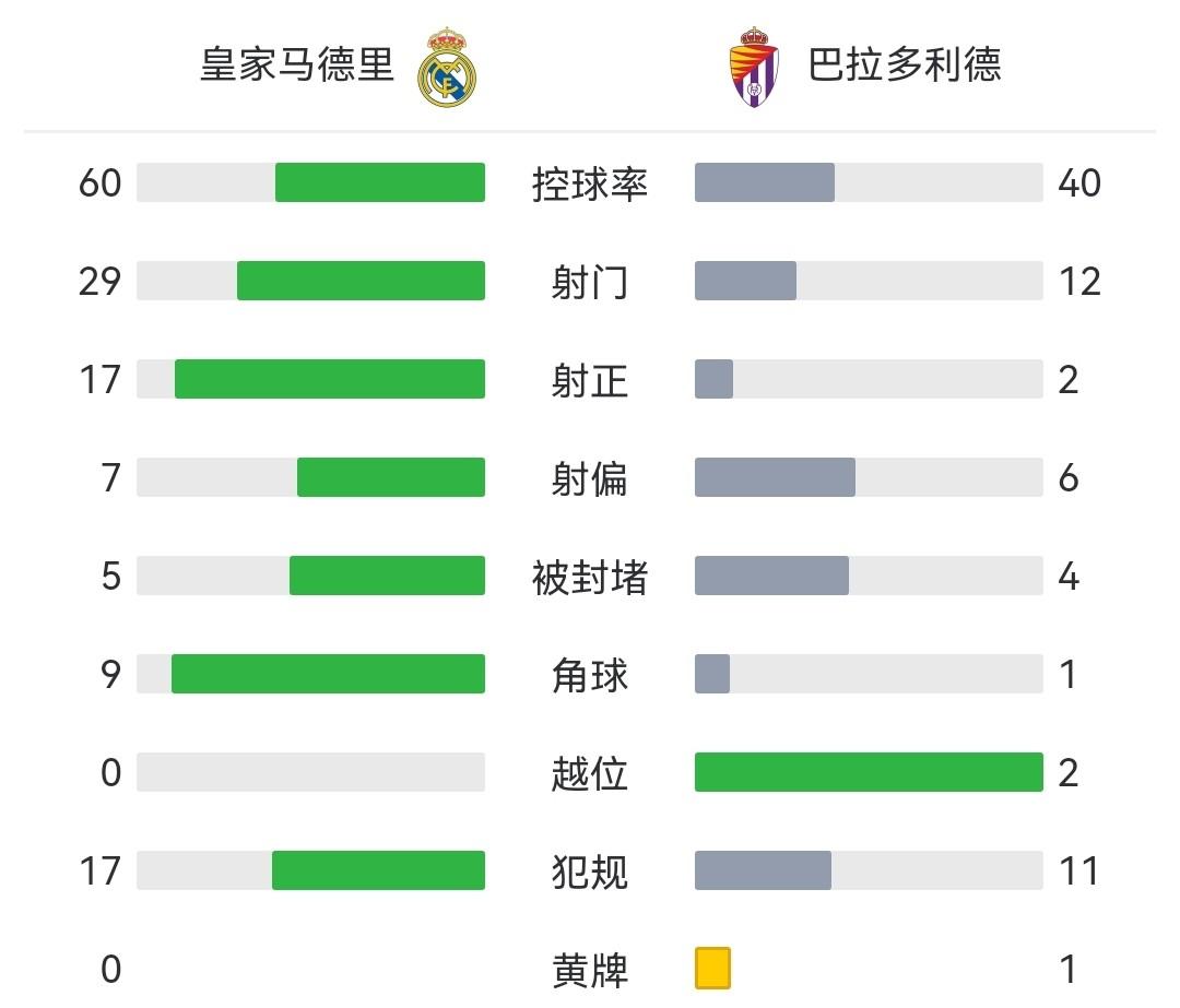最终皇马6-0巴拉多利德,仍距榜首的巴萨12分。