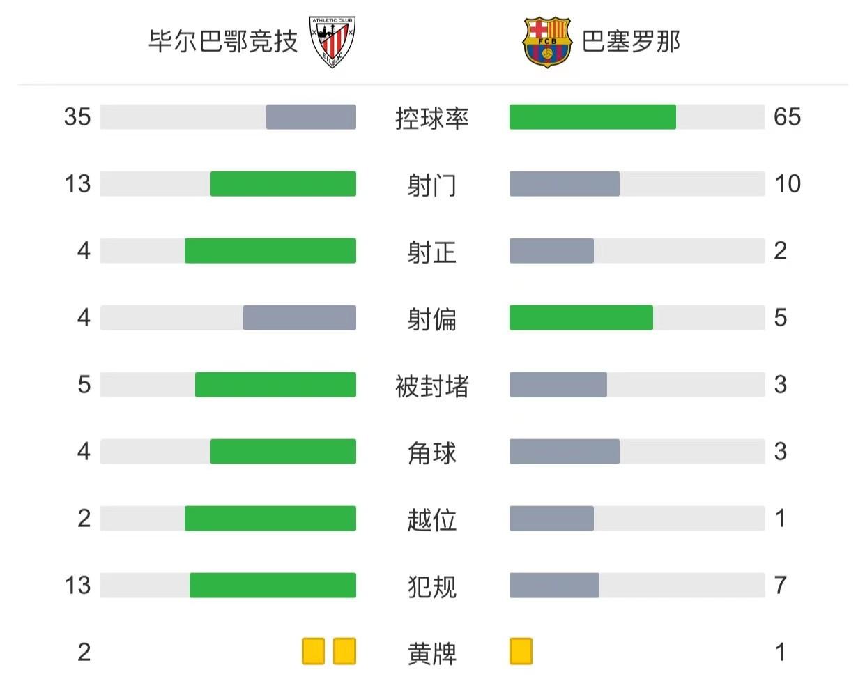查看:毕尔巴鄂vs巴塞罗那 全场录像技术统计: