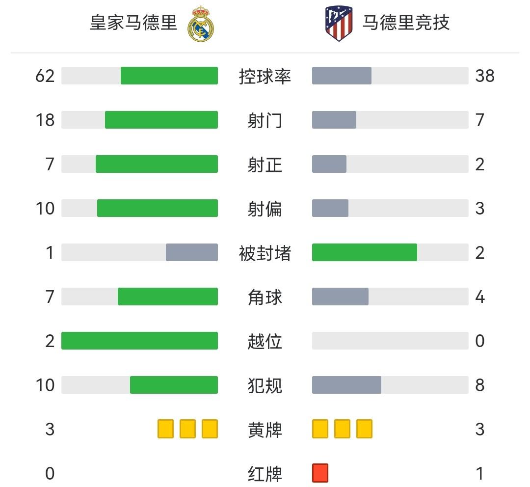 全场比赛结束,最终皇马1-1十人马竞。