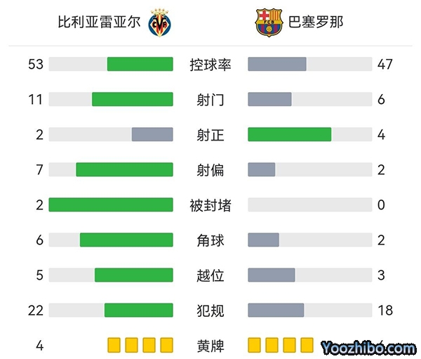 全场比赛结束,最终巴萨1-0击败比利亚雷亚尔。