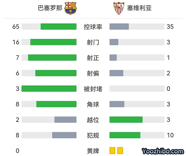全场比赛结束,最终巴塞罗那3-0塞维利亚8分领跑!
