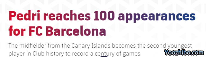在效力巴萨的前100场比赛中,佩德里打进15球送出7次助攻。