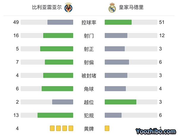 全场比赛结束,最终皇家马德里1-2比利亚雷亚尔。