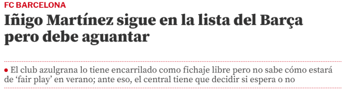 现在巴萨有机会免签伊尼戈,但他们还面临着财政公平法案和工资限额的问题。