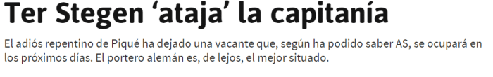 《阿斯报》表示,目前巴萨队长皮克已经选择退役,副队长布斯克茨可能在明年夏天离队,因此他们需要选出一名新的队长。