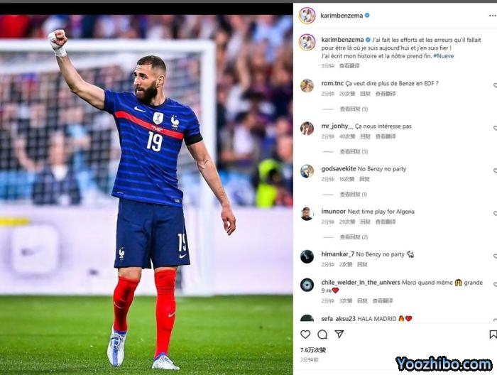 JRS直播网12月20日讯 本泽马在个人社媒发文,宣布自己将从法国国家队退役。