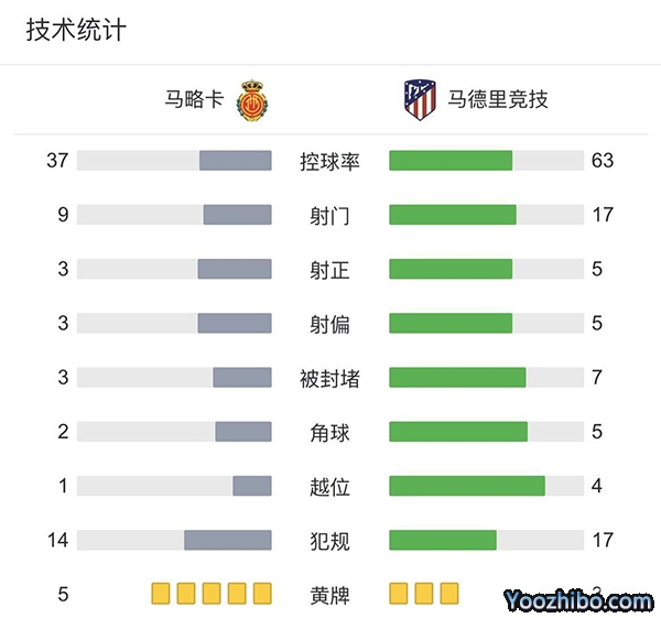全场比赛结束,马竞0-1马洛卡。