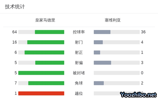 最终全场比赛结束,皇马1-0塞维利亚。