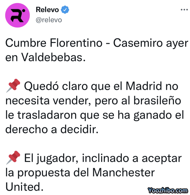 JRS直播网08月18日讯 ,来自西班牙媒体Relevo的最新消息,英超豪门曼联俱乐部距离签下效力于皇马的后腰卡塞米罗,已经越来越近了。皇马主席弗洛伦蒂诺已经愿意放人,而卡塞米罗本人则倾向于加盟曼联,这笔交易转会费或高达7000万欧元。