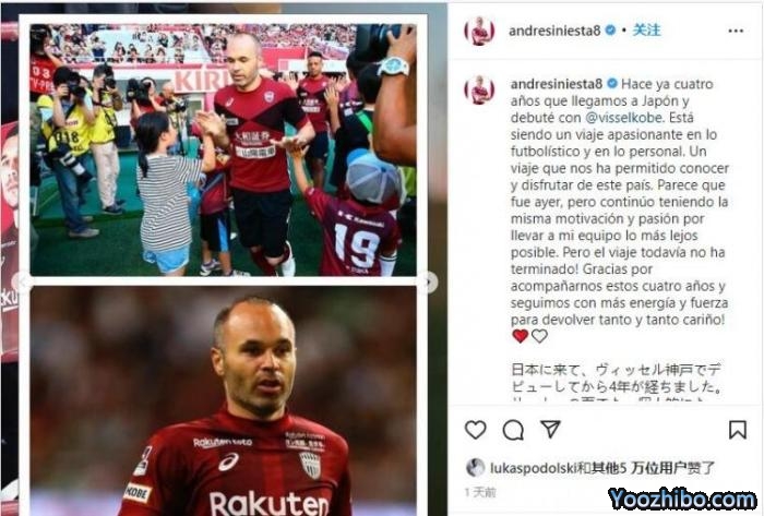 JRS直播网07月24日讯 今日,西班牙球星伊涅斯塔更新了个人社媒,纪念自己上演神户胜利船首秀的4周年纪念日。