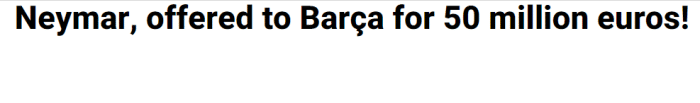 JRS直播网06月23日讯 西班牙六台记者JoséÁlvarez报道,内马尔被推荐给了巴萨,标价5000万欧元。