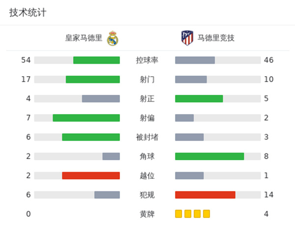 最终全场比赛结束,皇马1-1马竞。