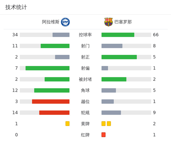 巴萨3-1阿拉维斯 罗克替补13分钟破门+连吃2黄