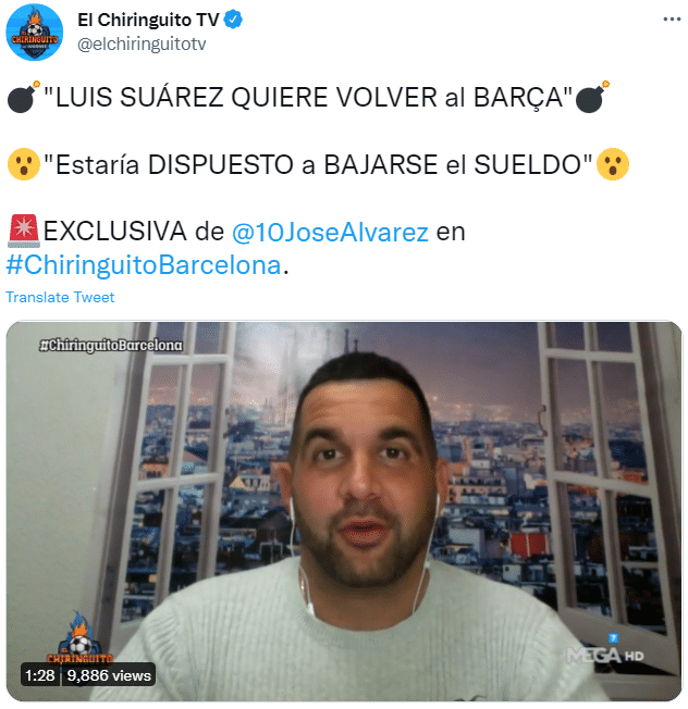 JRS直播网05月06日讯 据西班牙六台节目ElChiringuito记者JoseAlvarez报道,苏亚雷斯想重回巴萨,并愿意降薪加盟。