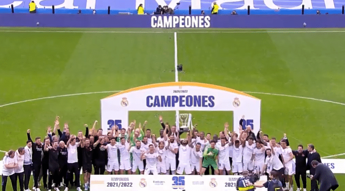 JRS直播网05月01日讯 ,西甲第34轮结束了一场焦点战,皇马主场4-0击败西班牙人队,提前加冕本赛季西甲冠军,队史第35座西甲冠军。皇马踢了34轮比赛,战绩是25胜6平3负,积81分,领先第二名塞维利亚和巴塞罗那,提前4轮加冕本赛季西甲联赛冠军。安切洛蒂成为第一位获得五大联赛冠军的主帅,这是一项伟大的纪录。皇马成功夺冠,接下来的目标要瞄准欧冠半决赛次回合对阵曼城的比赛了。
