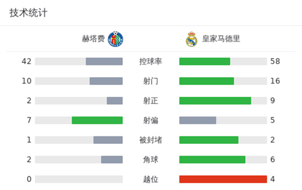 最终全场比赛结束,皇马2-0赫塔费。