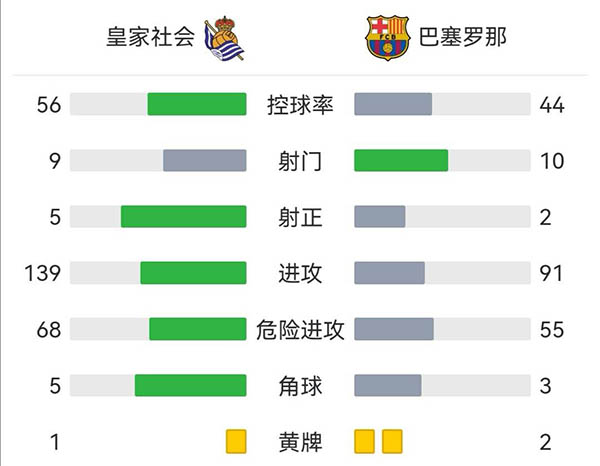 全场比赛结束,巴塞罗那客场1-0小胜皇家社会