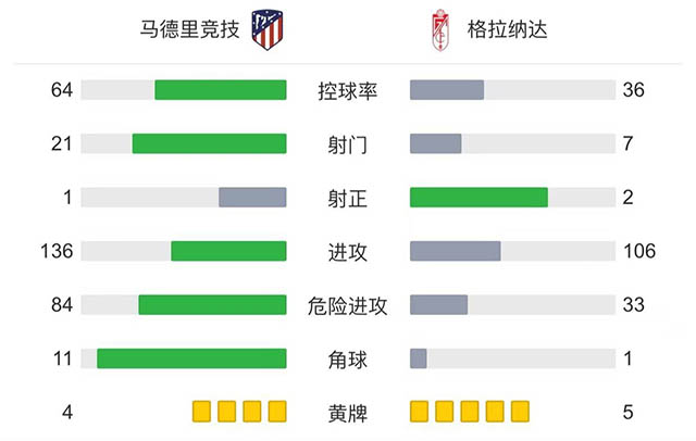 全场比赛结束,马竞0-0被格拉纳达逼平