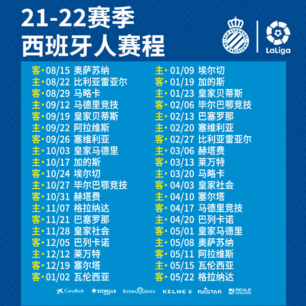 JRS直播网9月14日讯2021-2022赛季西甲联赛将在8月中旬正式开赛,那么新赛季西班牙人的赛程是如何安排的呢,相信这是许多武磊球迷最关心的,接下来就随小编一起来了解一下吧。