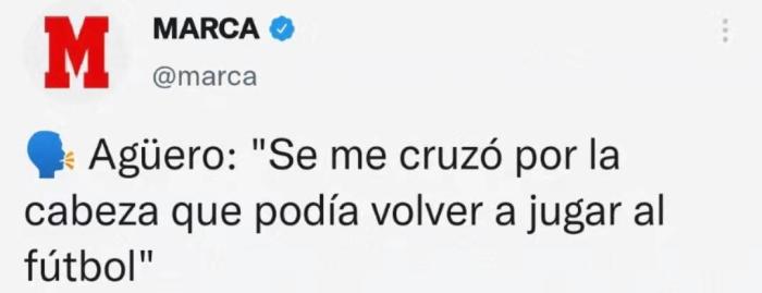 去年12月,阿圭罗由于健康状况不佳,心脏出现问题,被迫退役。他在采访中说道:“昨天我突然想到我可以重新踢足球了,医生告诉我,我必须静养5到6个月,但我已经想回去训练了。