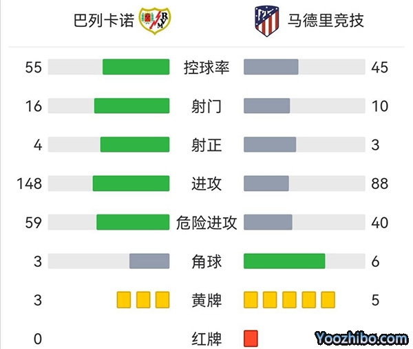 第49分钟,菲利克斯送出直传,科克直接推射远角入网,巴列卡诺0-1马德里竞技。