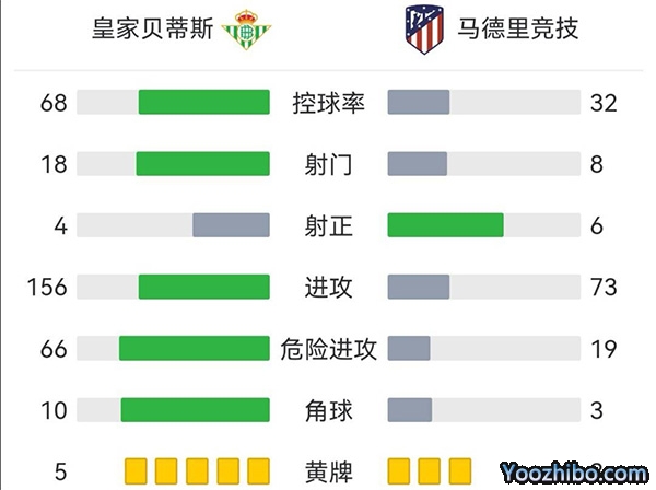 全场比赛结束,最终马竞客场3-1贝蒂斯。