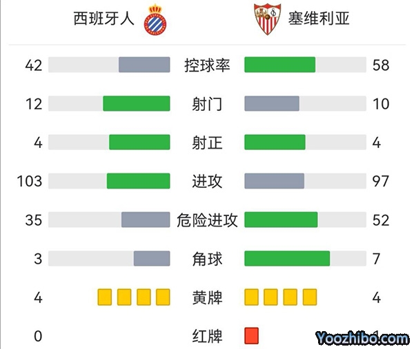 全场比赛结束,西班牙人主场1-1十人塞维利亚!