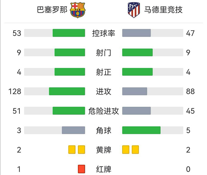 巴塞罗那4-2马竞 阿尔维斯传射后染红特劳雷献助攻