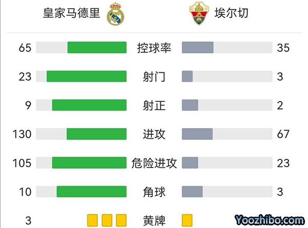 全场比赛结束,皇马2-2埃尔切,各项赛事五连胜被终结。