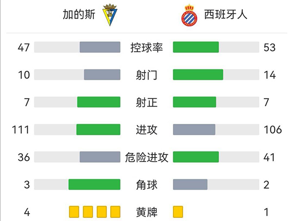 全场比赛结束,最终西班牙人2-2绝平加的斯。
