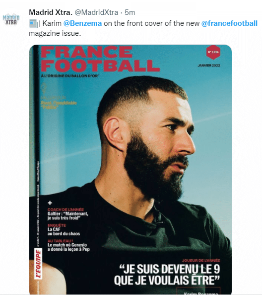 在接受该杂志采访时,本泽马表示:“我成为了自己一直想成为的9号球员。”该杂志将在明天放出本泽马的详细采访。