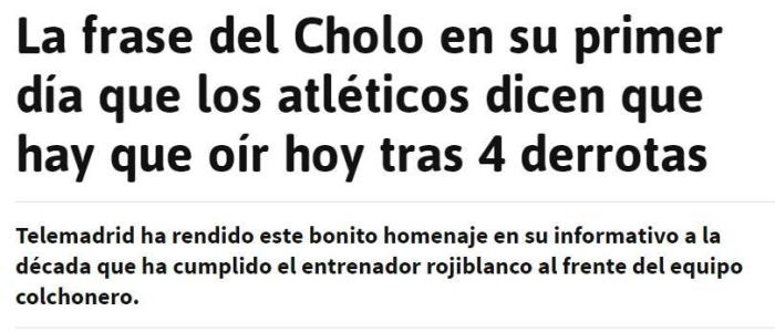 西蒙尼刚刚迎来执教马竞10周年纪念,这10年里他都不曾经历过联赛4连败,因此俱乐部选择在这个艰难的时候力挺西蒙尼。