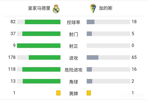 全场比赛结束,皇家马德里主场0-0战平加的斯。
