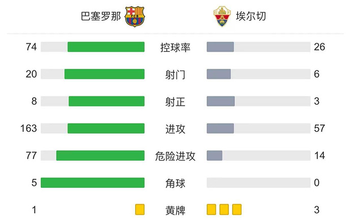 最终全场比赛结束,巴萨3-2战胜埃尔切。